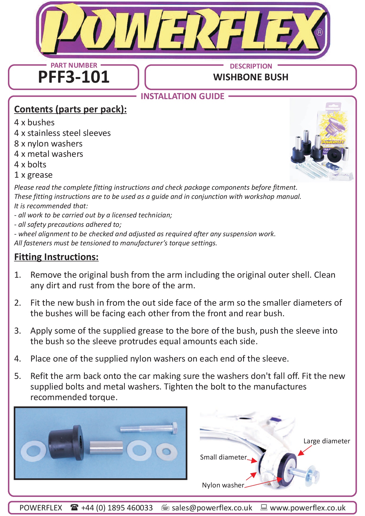 Deze bus past op geperst stalen draagarmen vooraan met een bus van 37 mm. Voor gegoten draagarmen met 45 mm bus, monteer PFF3-102.