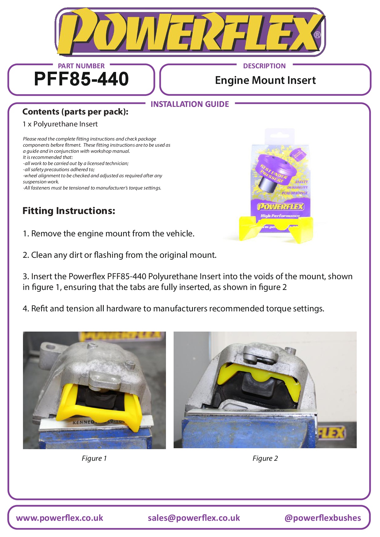 PFF85-440R gebruikt ons zachtste Grey 65A-materiaal, speciaal ontworpen om NVH-transmissie te minimaliseren. Aanbevolen voor ongemodificeerde dieselmodellen of voor bestuurders die een subtiele verbetering van het rijgevoel willen, zonder afbreuk te doen aan comfort. Een kleine toename van NVH, meestal bij stationair draaien, moet worden verwacht bij het verstevigen van de verbindingsbevestiging tussen de aandrijflijn en het chassis. Hoe harder het gebruikte materiaal, hoe groter de NVH-overdracht. Het verminderen van motor-/transmissiebeweging door middel van verbeterde inzetstukken heeft de volgende voordelen: Scherpere gasrespons Nauwkeurigere versnellingswisselingen Minder wielhop Verbeterde tractie Langere levensduur van de bevestiging