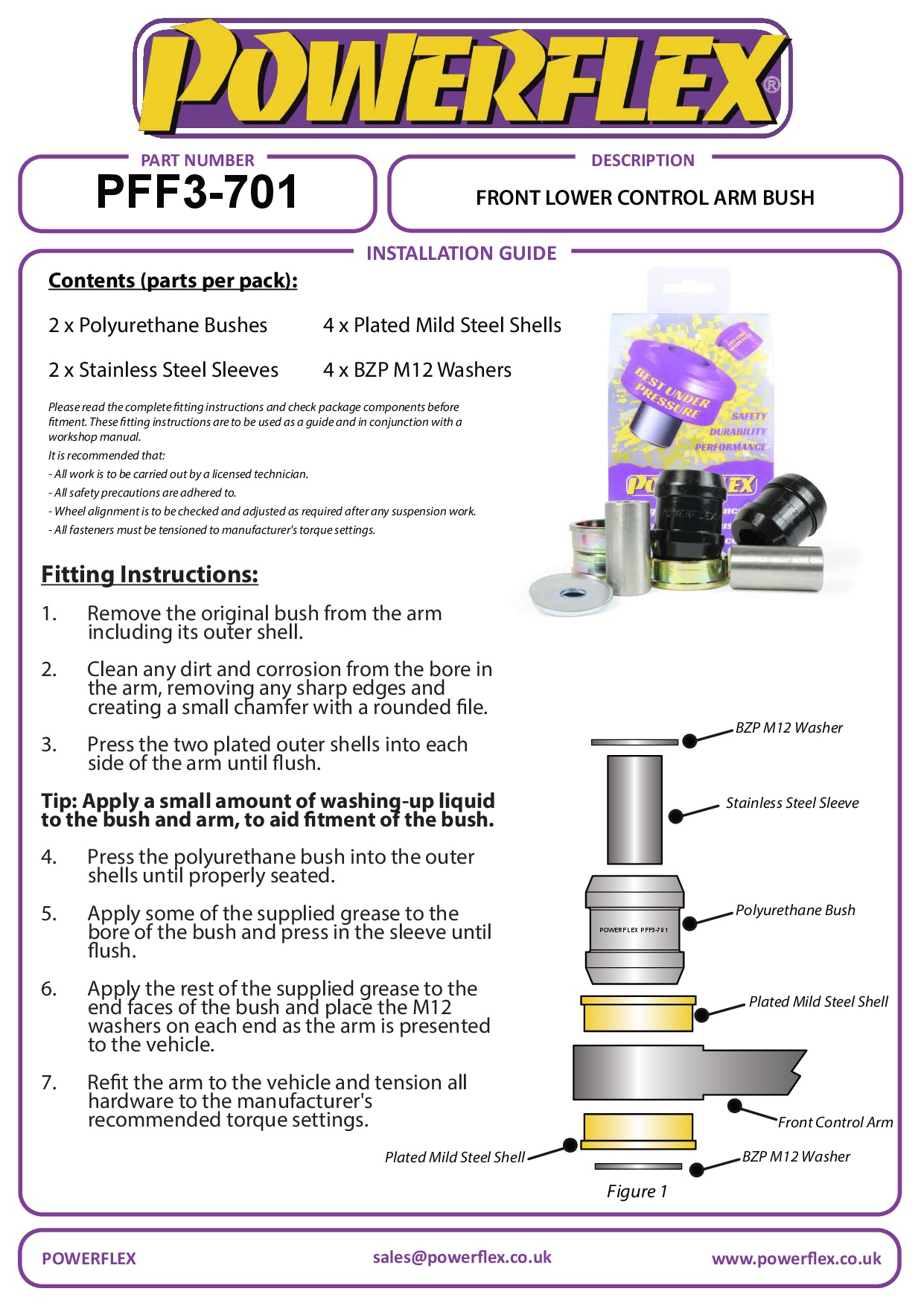 PFF3-701BLK is een versterkte vervangende bus die 18% stijver is dan de originele bus om de prestaties van de bus te revitaliseren en de stuurprecisie te herstellen.