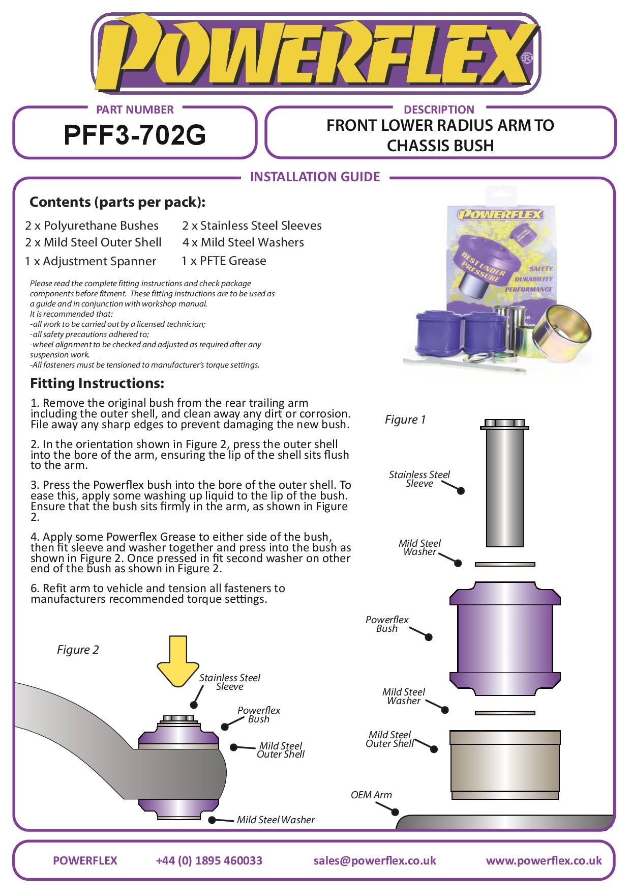 Dit onderdeel is geschikt voor armen met een bus van 75 mm diameter. Voor armen met bussen van 65 mm gebruikt u PFF3-802G. Dit is een vervangend onderdeel dat in onze wegserietoepassing 35% stijver is dan de originele rubberen bus om de toegenomen belasting te weerstaan die door deze positie op de auto wordt gezien. PFF3-702G biedt +/- 0,5 caster-offset die op de auto kan worden aangepast voor een beter stuurgevoel. Extra caster creëert ook extra negatieve camber in de bocht, wat zorgt voor beter contact van de band met de weg bij zwaar bochtenwerk. Voor een niet-verstelbare versie van deze bus gebruikt u PFF3-702.