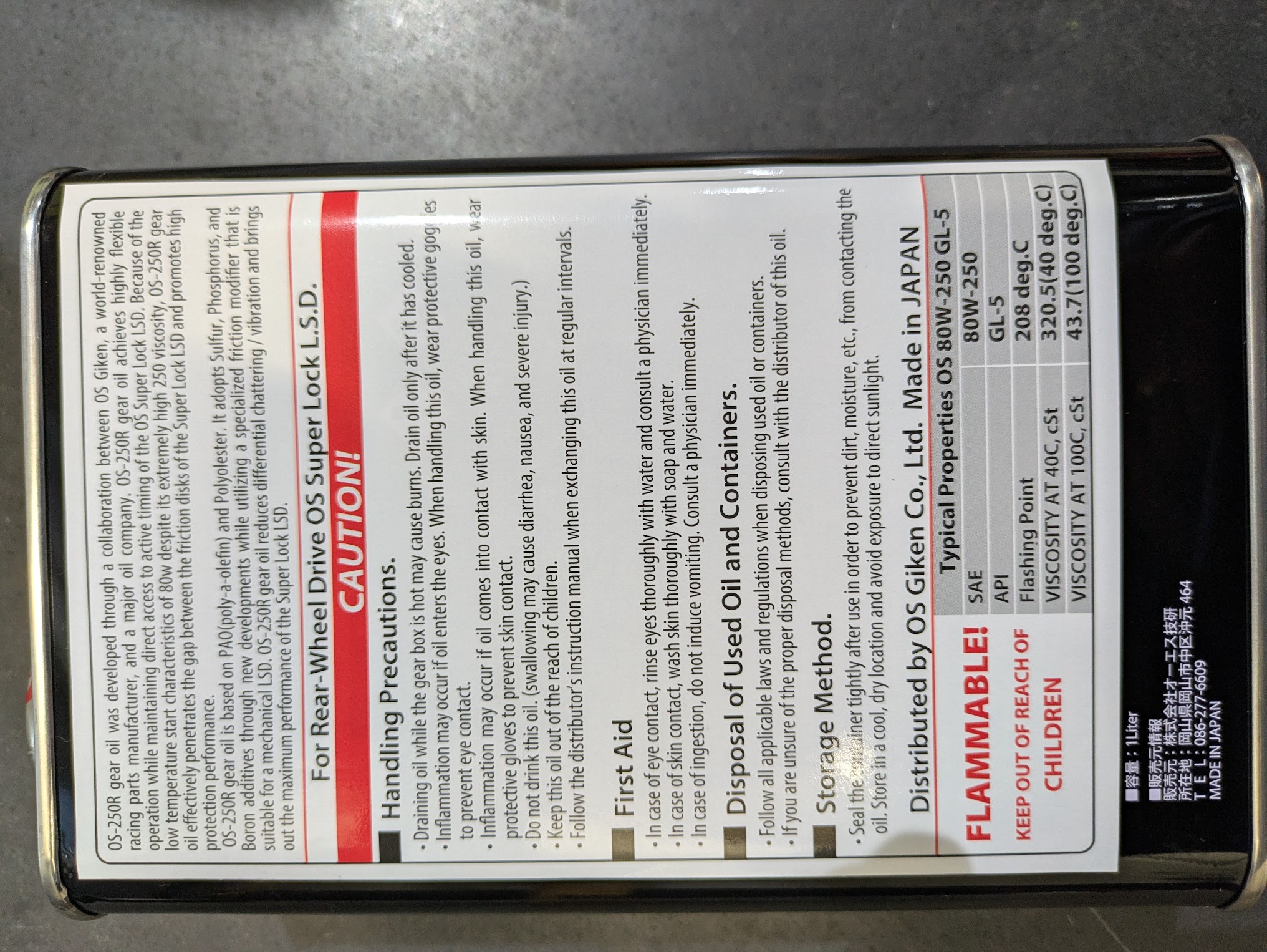 OS 250R is speciaal geformuleerd op basis van de hoogste kwaliteit olie voor maximale performance en het soepel draaien van de OS Giken sperdifferentiëlen, maar ook erg geschikt voor andere sperdifferentiëlen. Door de middelpuntvliedende kracht heeft olie de neiging weg te stromen uit het binnenste van het spermechanisme. Deze olie is extra dik en blijft beter binnen plakken waardoor er optimale smering is in het spermechanisme en de sperplaten. De formulering is ook bestand tegen extreem hoge temperaturen en biedt betere performance en duurzaamheid voor OS Giken platen sper modellen, maar is ook zeer geschikt voor andere merken differentiëlen met frictieplaten.