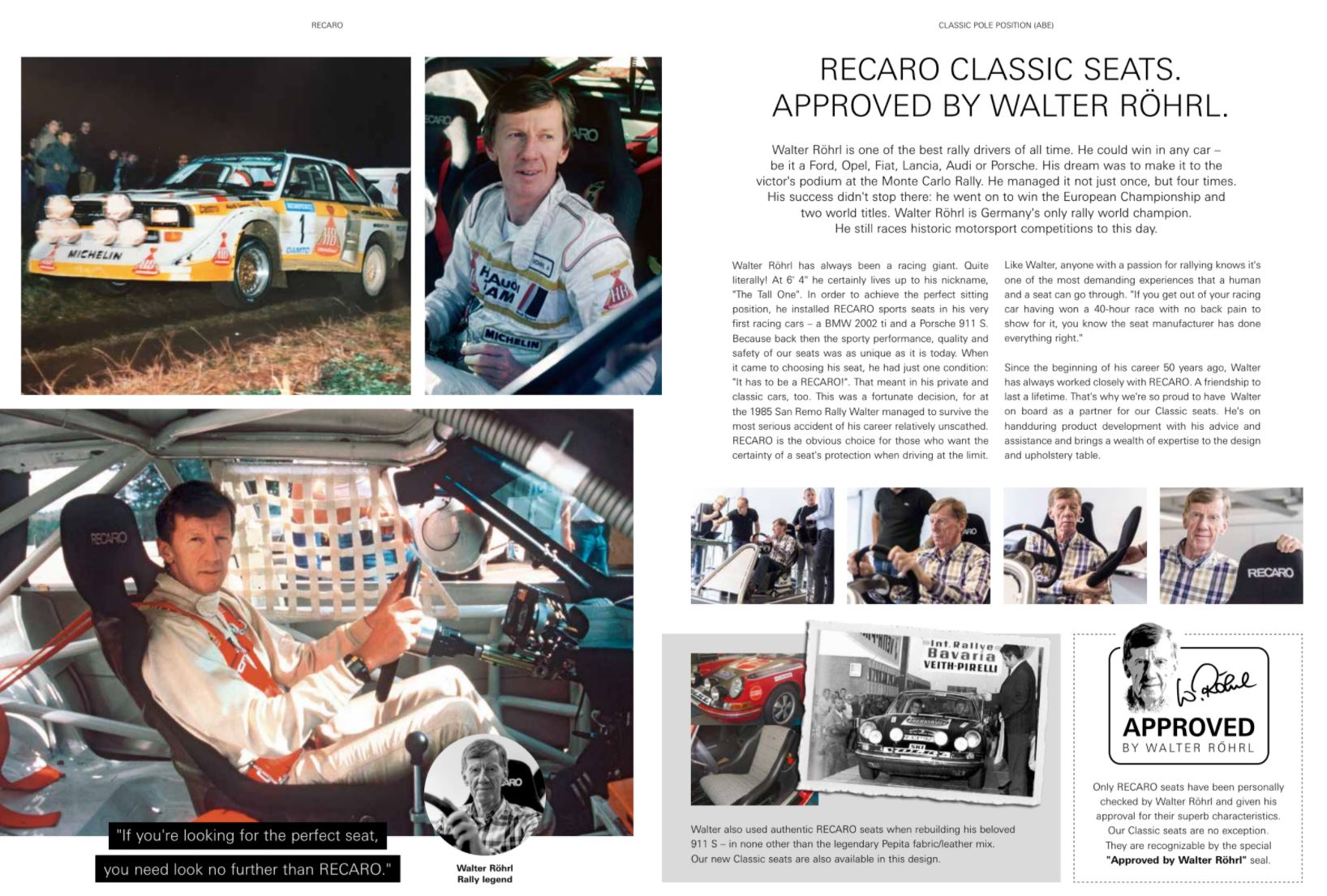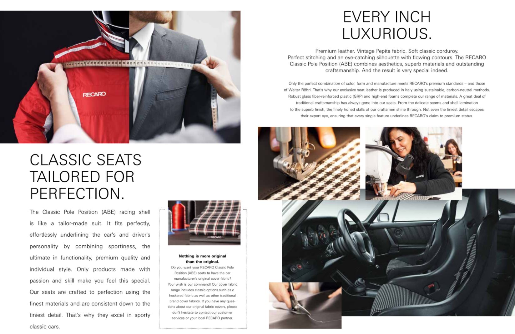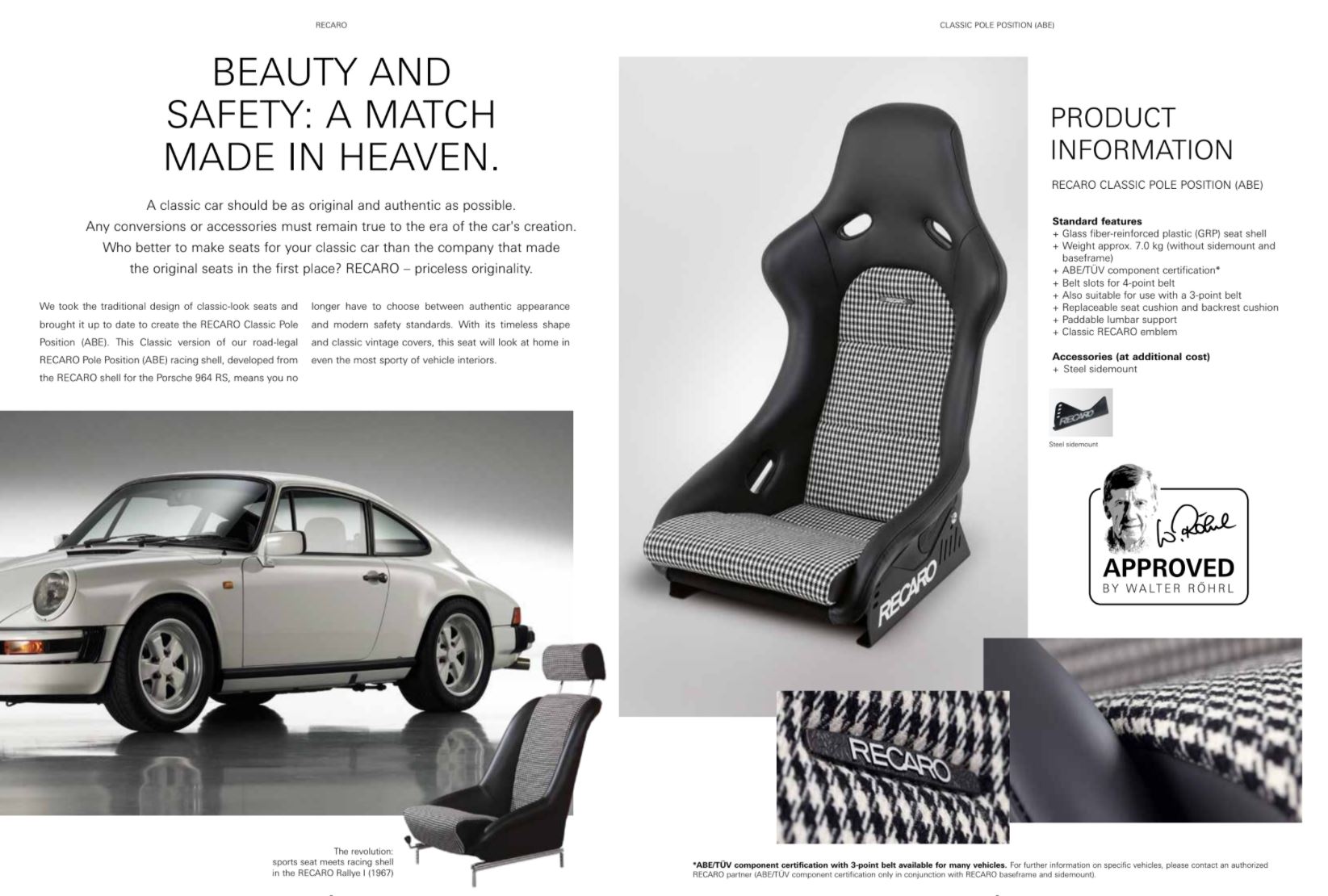 Wie kan er beter stoelen maken voor uw klassieke auto dan het bedrijf dat de originele stoelen in de eerste plaats heeft gemaakt?We namen het traditionele ontwerp van stoelen met een klassieke uitstraling en brachten het up-to-date om de RECARO Classic Pole Position (ABE) te creëren.Deze klassieke legale straatversie van de RECARO Pole Position (ABE) raceschaal, is ontwikkeld van de RECARO-schaal voor de Porsche 964 RS. dit betekent dat je niet langer moeten kiezen tussen authentieke uitstraling en moderne veiligheidsnormen. Met zijn tijdloze vorm en klassieke vintage bekleding, zal deze stoel er als origineel uitzien in zelfs de meest sportieve interieurs van een voertuig.
