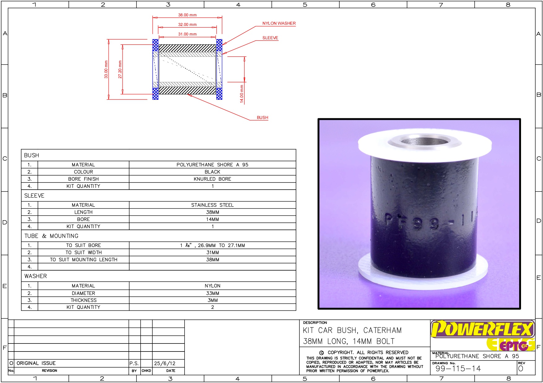 Universal Kit Car Bush Caterham Type, 38mm Long, 14mm Bolt Kit Car Range, Parallel Bushes, road