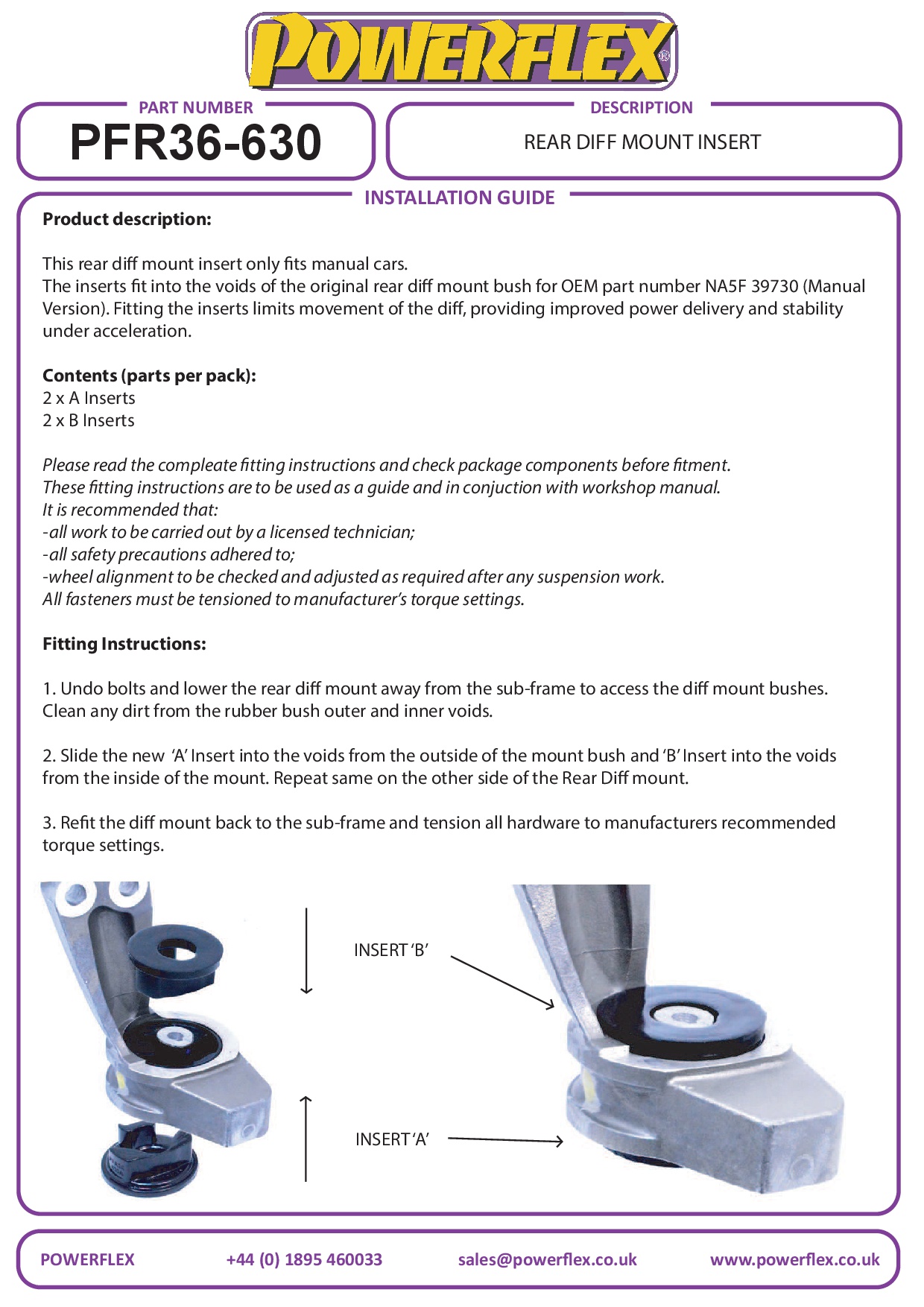 Achterste diff-montage inzetstuk 124 Spider incl. Abarth, MX-5, Miata, Eunos, straat