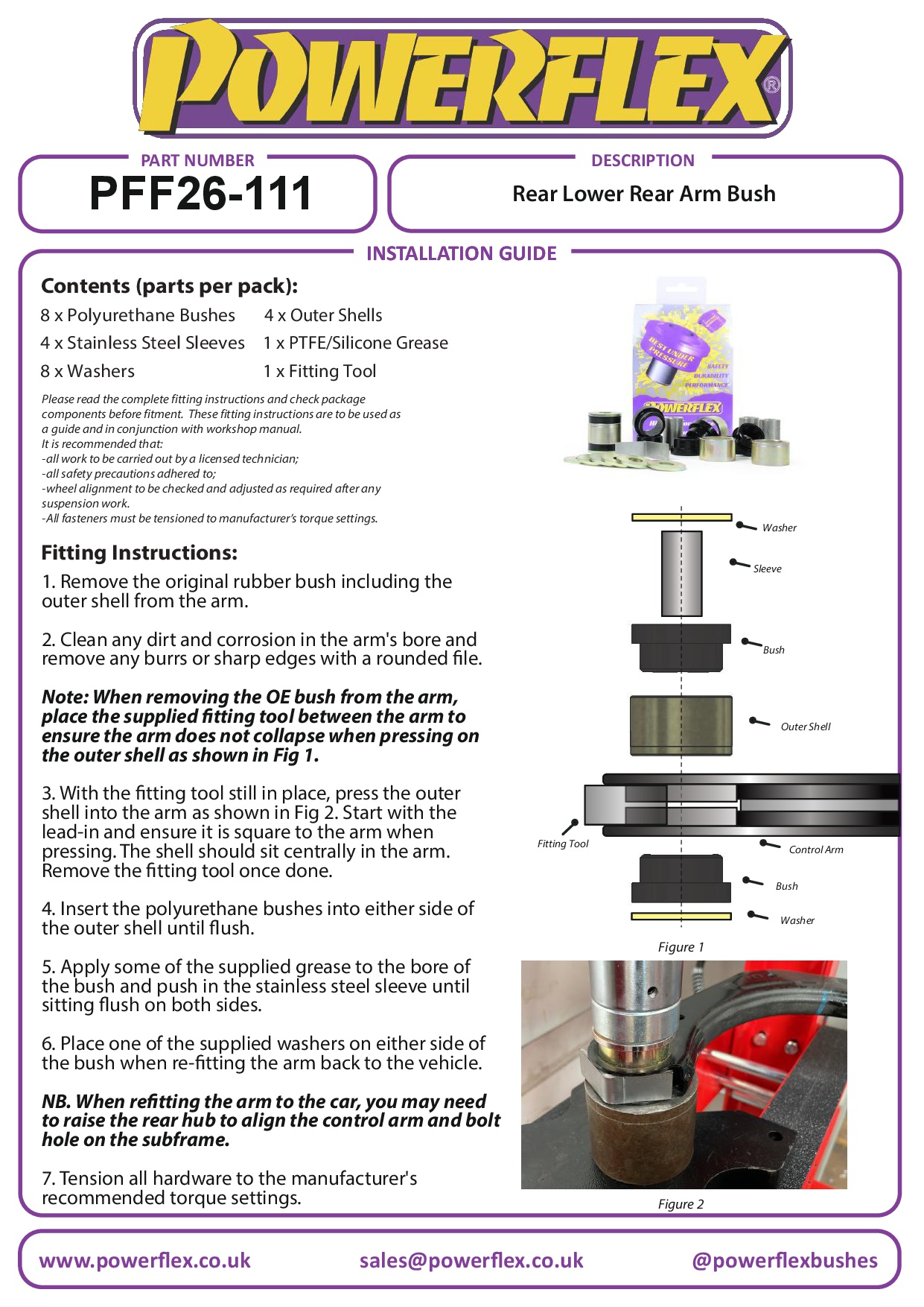 Door gebruik te maken van een stalen buitenschaal en ons zwarte 95A Durometer-polyurethaan, zorgt deze bus voor langdurige prestaties en controle over de spoorgeometrie van de achterwielen. Inclusief stalen montagegereedschap om de geperste stalen arm te ondersteunen tijdens het aanbrengen van de bus. Past niet op de gelaste buisarm van fastback-modellen.