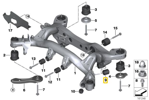 Achterwieldrager – draagarmbussen (aluminium behuizing met lager) BMW F3x, F2x