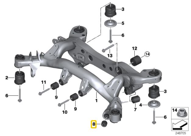 Aluminium bussen achtersubframe met lagers – BMW E8X / E9X M1, M3