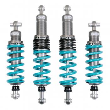 The kit comprises four 1-way adjustable dampers with fitted springs. The single adjuster knob affects both bump and rebound for simple setup with a road-biased spec. These shocks are designed to run inverted for reduced unsprung mass and therefore optimum performance. Dampers are delivered preset with a full compliment of bearing spacers ready to fit to the car.