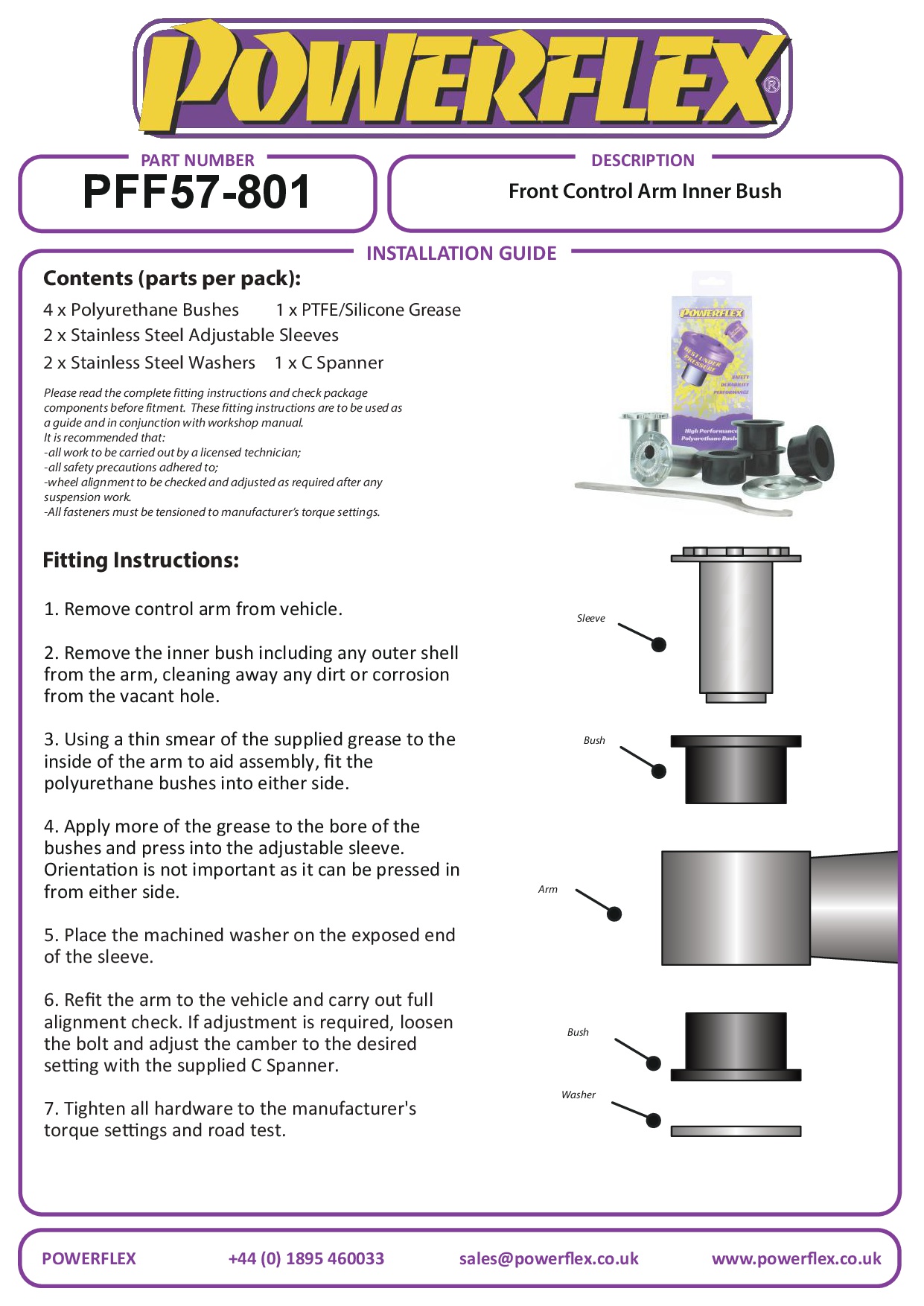 Met de PFF57-801 kan de voorste camberhoek op de auto worden aangepast met +/- 0,75. Voor niet-instelbaar gebruik PFF57-503.