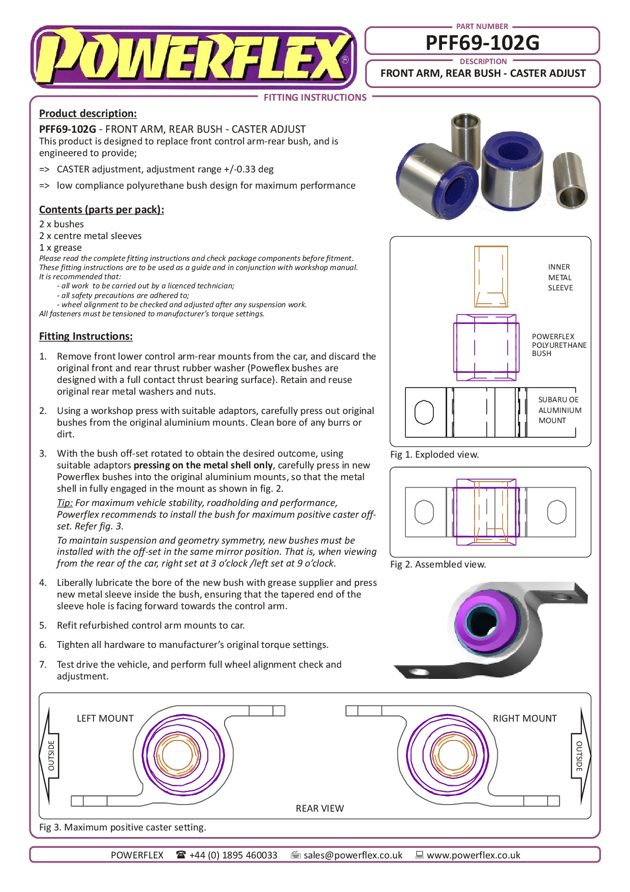 Voorste arm achterste bus - caster afstellen Impreza, heritage