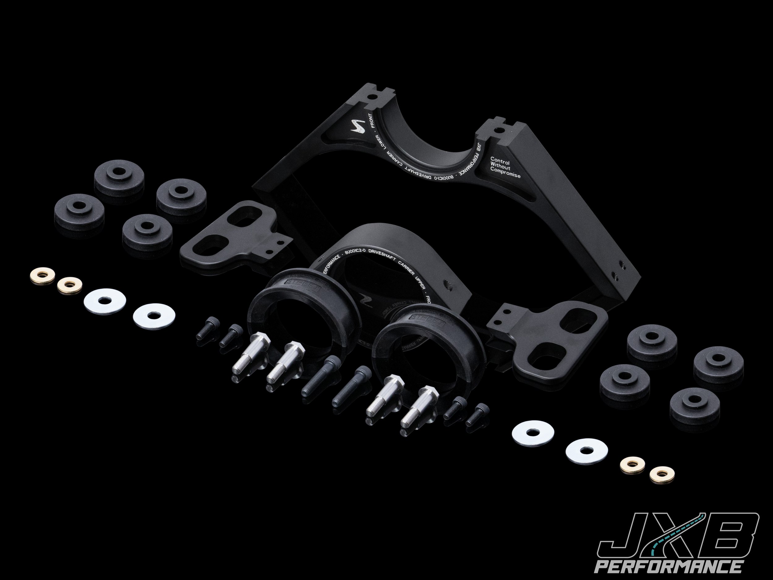 De steunlagerdrager wat origineel gemonteerd zit, houdt de aandrijfas op zijn plaats met rubber dat zo dun is dat ongeveer 20 lbs kracht hem van het midden naar het einde van zijn slag verplaatst. Tijdens lanceringen en verschuivingen mag de aandrijfas uit het midden bewegen, waardoor de gasrespons afneemt en oscillaties door de aandrijflijn worden veroorzaakt. Naarmate ze ouder worden, zakt het draagrubber in en gaat het rotten, waardoor de uitlijning van de aandrijfas wordt verstoord.