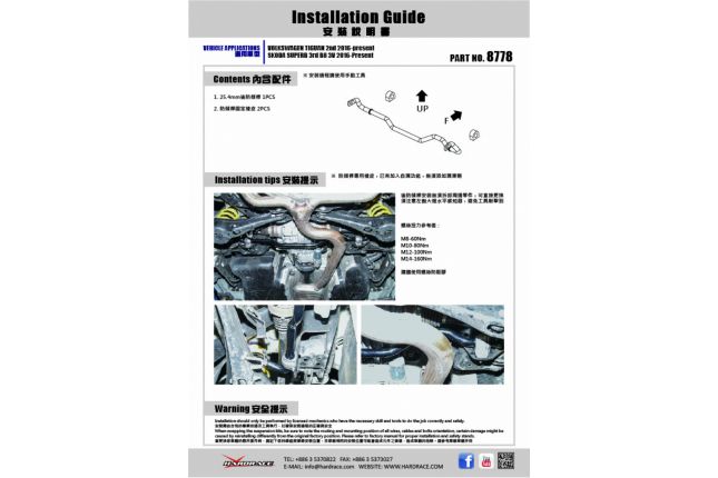Deze sport stabilisatorstang be‹nvloedt het weggedrag en de over/onderstuur balans van de auto. Het verbindt de ophanging aan de voor- of achterkant, houdt uw auto in bochten valk in plaats van naar ‚‚n kant te leunen. Hardrace-stabilisatorstangen bieden betere controle, vooral bij hoge snelheden in bochten. Een dikkere stabilisatorstang zorgt er voor dat de as waarop deze geinstalleerd iets aan grip inlevert om de auto meer grip te geven in zijn geheel. Als dit alleen op de vooras of achteras gedaan word verandert hiermee de balans. (dikker op de vooras, meer onderstuur - dikker op de achteras, meer overstuur). Let op, een beetje overhellen is niet gek in de regen want dan kan dat voor meer grip zorgen.